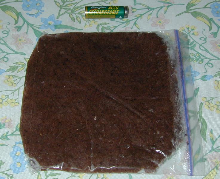 Once it's all mixed, I then spoon it into zip lock bags and flatten them.