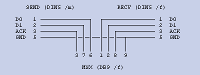 pin - connection 1 - MSX2 pin 6 2 - MSX2 pin 7 3 - MSX2 pin 8 4 - nc 5 - nc 6 - MSX2 pin 1 7 - MSX2 pin 2 8 - MSX2 pin 3 9 - MSX2 pin 9
